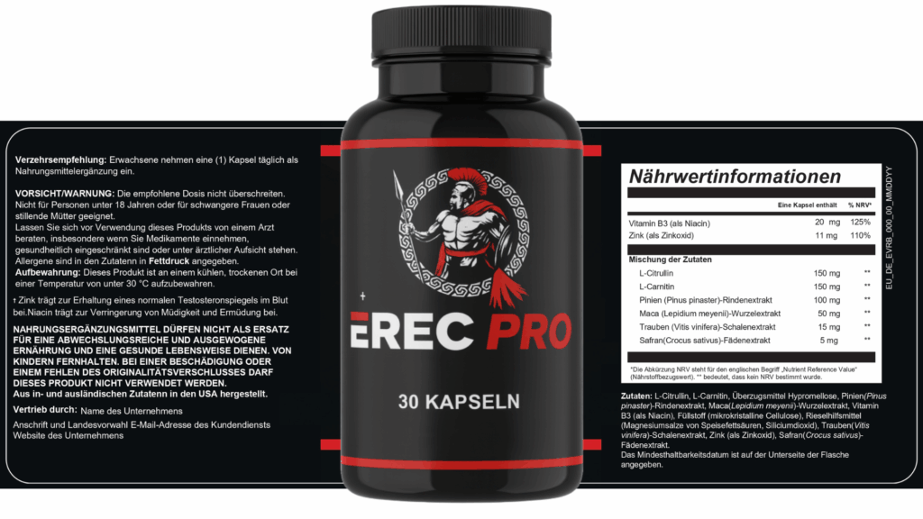 ErecPro ist eine fortschrittliche Formel zur Unterstützung männlicher Vitalität, entwickelt mit einer einzigartigen Mischung aus natürlichen und wissenschaftlich geprüften Inhaltsstoffen. Die Zusammensetzung wurde speziell dafür entwickelt, Männern zu helfen, die unter nachlassender Energie, Müdigkeit, Stress oder verminderter Ausdauer leiden – häufige Folgen moderner Lebensweise und des natürlichen Alterungsprozesses.