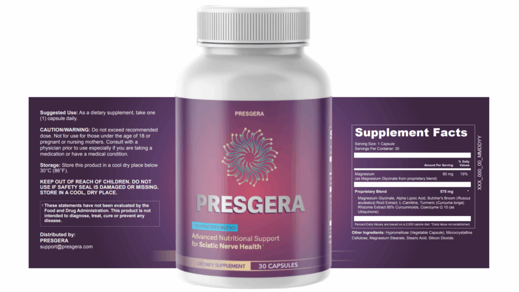 Presgera is a nutritional supplement developed to support nerve health, relieve discomfort, and improve circulation, formulated only with natural and scientifically supported ingredients. Its carefully crafted formula works by supporting healthy nerve function, reducing tingling and numbness, improving daily comfort, and promoting overall nerve vitality.